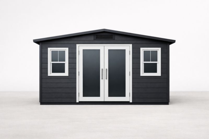 Capanno da Giardino in Legno Composito con Doppi Vetri e Doppia Porta Nero